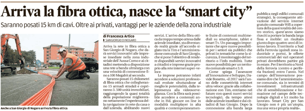 Posso annunciarvi che – per San Giorgio di Nogaro – il 2017 sarà l’anno della connettività internet ultra veloce.