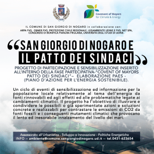Il confronto con il territorio e la sua gente è fondamentale, ma richiede fatica, studio, impegno, pazienza e capacità di ascolto e risposta ma soprattutto deve essere continuo e costante nel tempo. Posso dire quindi che, con un pizzico di orgoglio, questo innovativo strumento di pianificazione energetica ed ambientale è stato costruito assieme alla popolazione di San Giorgio.